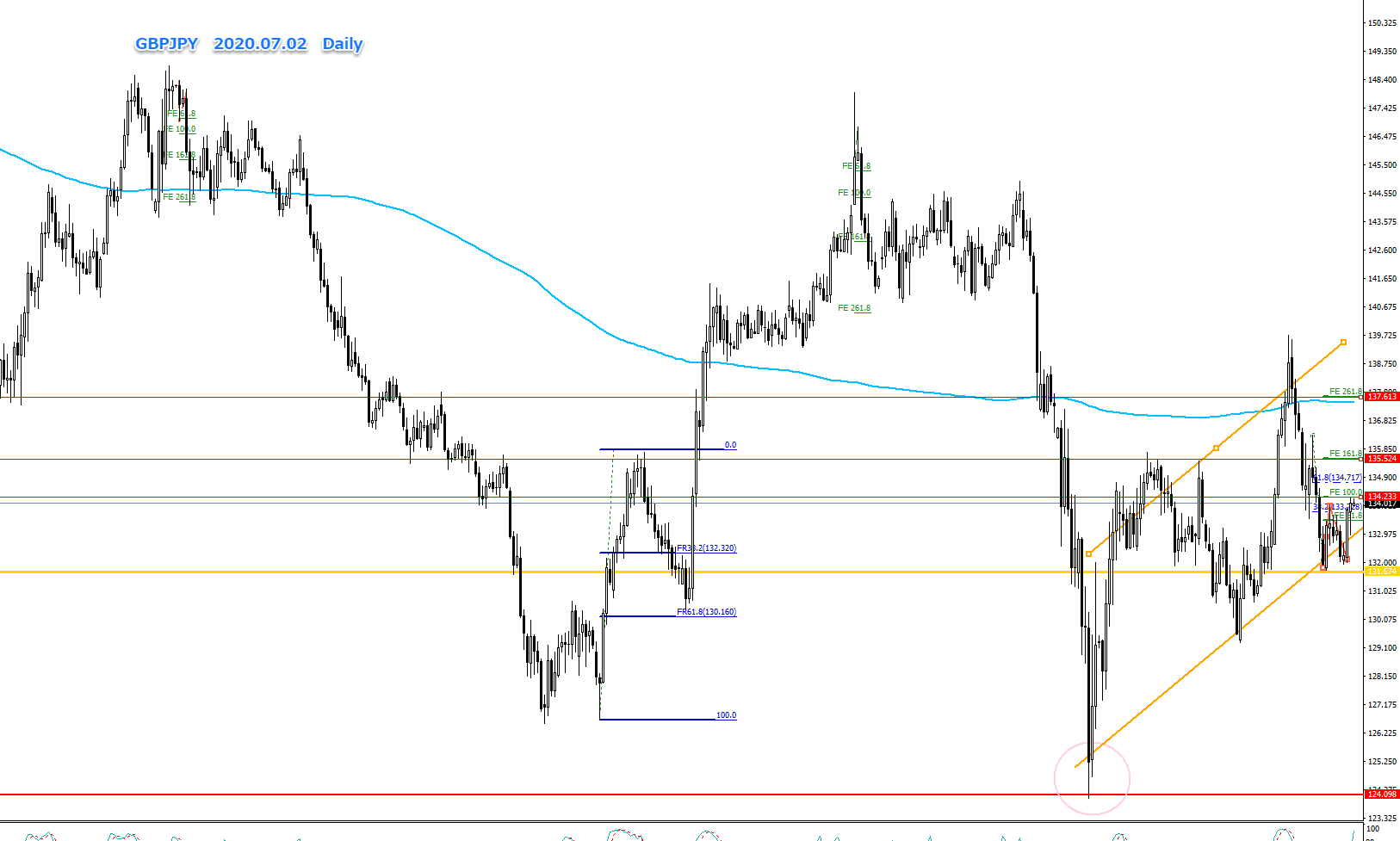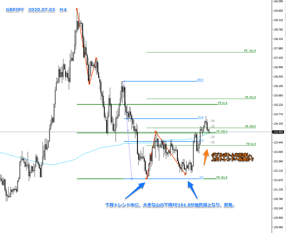 先週、下降トレンドが、FE161.8を抵抗線として、売りの決済(買い)と新たな買い注文により、大きく反発しました。