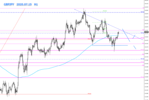 4時間足ですが、下降トレンドが、大きな山の下降FE161.8を抵抗線として、大きく反発しましたね。
