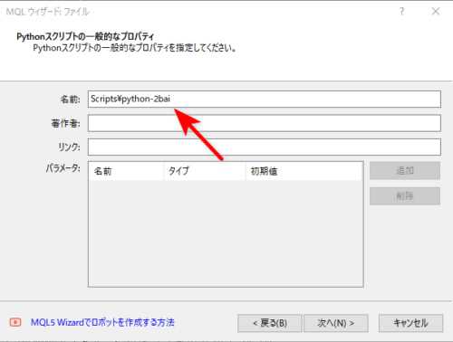 名前を適当につけます。(python-2bai)「著作者」「リンク」はなくてもOK
